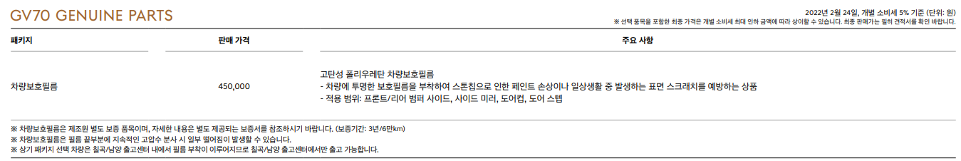 차량 보호 필름도 선택할 수 있습니다. 45만원의 가격에 차량을 보호할 수 있다니 괜찮아 보입니다.