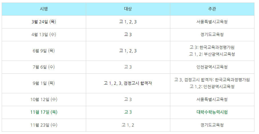 특히 3월 전국연합학력평가는 학년이 바뀐 뒤 첫 시험으로 겨울방학 동안의 학습 성취도를 점검하고, 수능 대비 학습 전략을 수립하기 위해 의미있는 자료로 활용되기 때문에 응시자가 더 많다고 합니다.